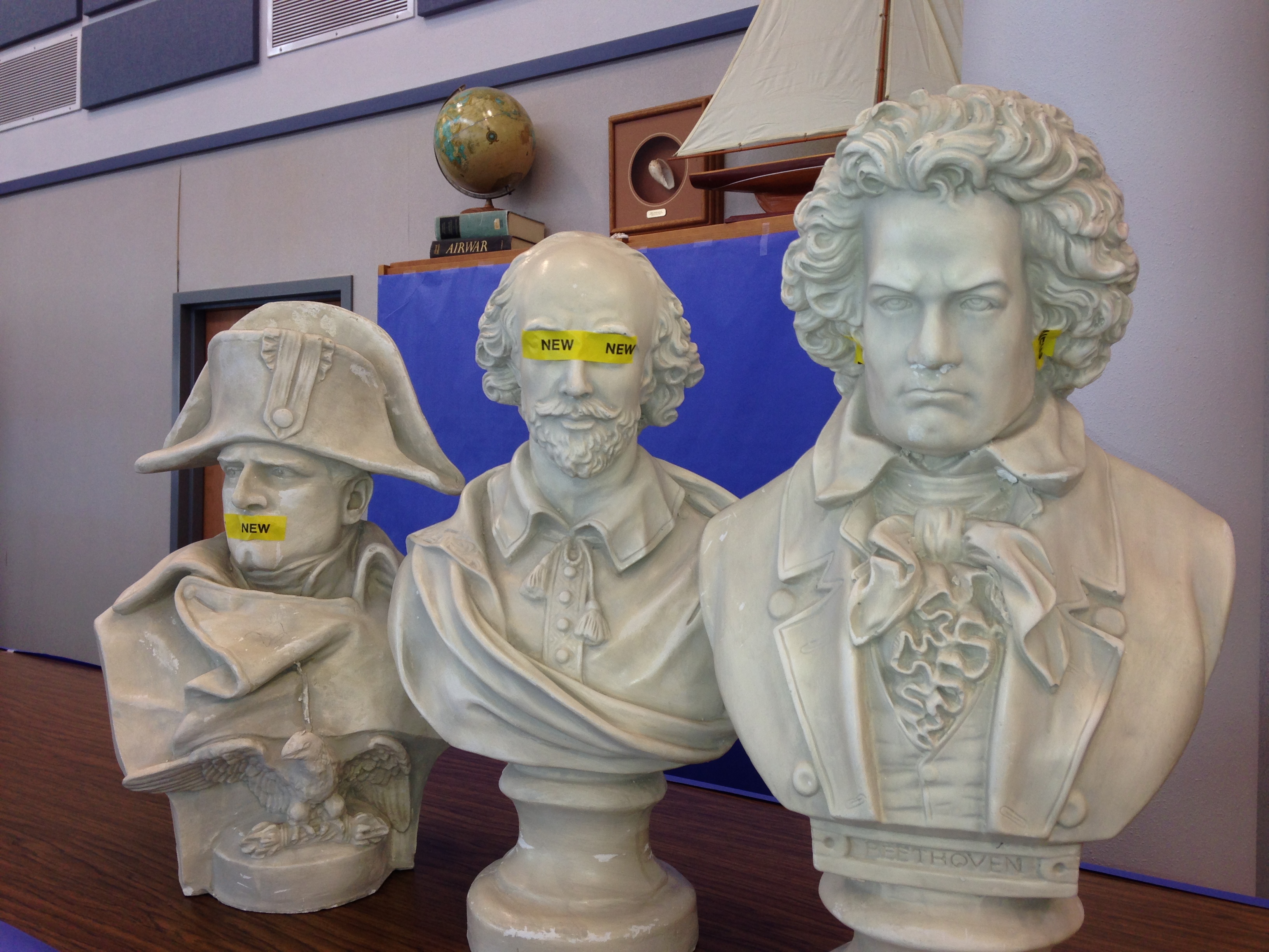 Now, I must return to today’s work at hand. Mr. Shakespeare, Maestro Beethoven, and Emperor Napoleon must be tucked into their respectful nooks for the coming days lest some student writer get the wrong idea for his writing.