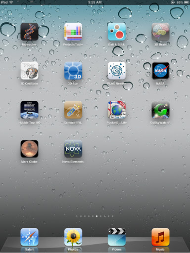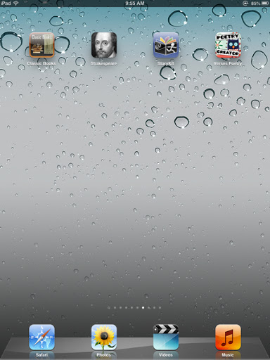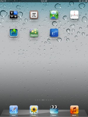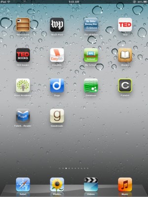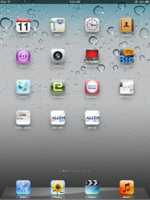 Our final step in preparing the devices for initial use involves manually organizing the apps by functionality and content onto screens so that they are classroom ready. This step must be done one-by-one…thank goodness for savvy student aides!And the final product: